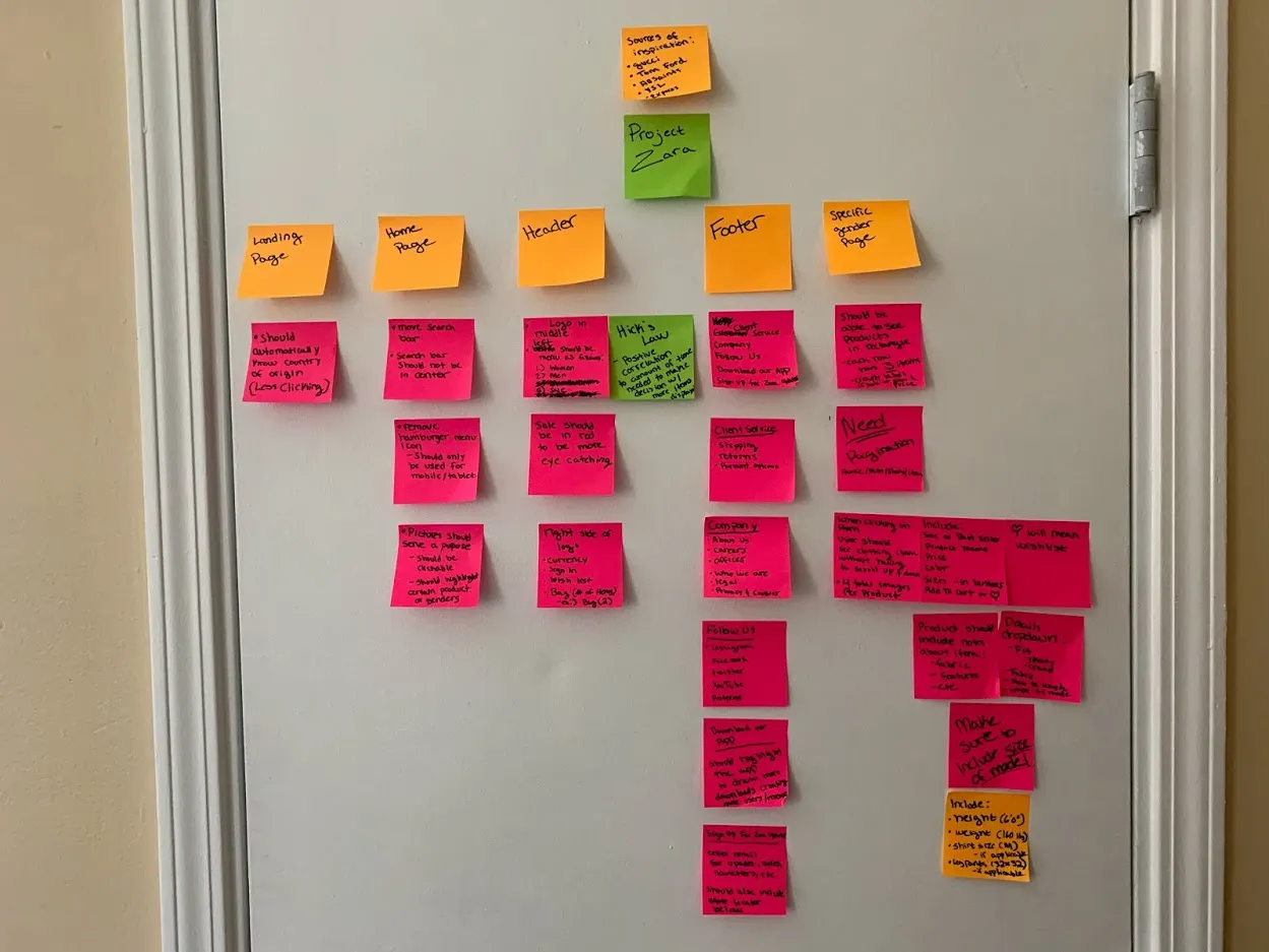 To fully understand how one should create a website that works for new and recurring customers, I had to first put my mindset into the user. By doing so I needed to identify the goals, needs, motivations, and frustrations customers feel towards Zara's online shopping experience.